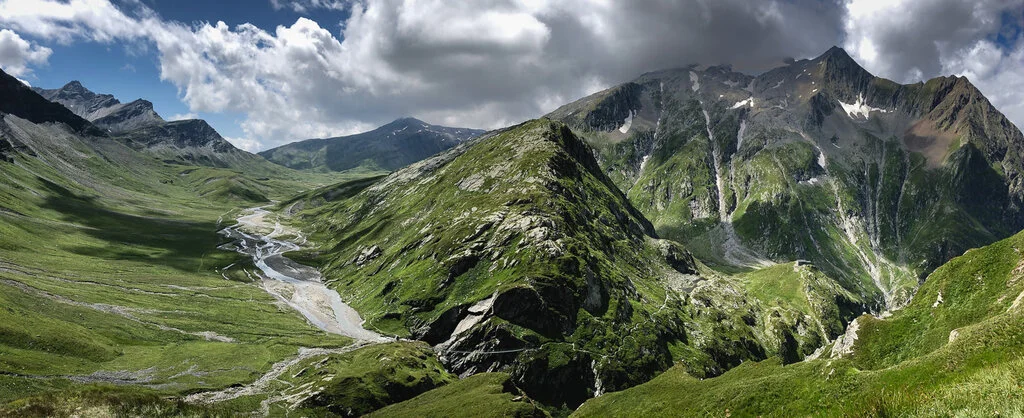 Bei sonnigem und teilweise windigem Wetter nehmen wir die 800 Höhenmeter zum Pass Diesrut unter die Füsse. Steilere Abschnitte wechseln sich mit langgezogenen Anstiegen ab. Durch die kahle Landschaft, geprägt von grasdurchsetzten Schutt- und Felsflächen, erreichen wir nach 2,5 Stunden die Passhöhe auf 2428m. Kurz nach dem Passübergang finden wir hinter grossen Felsblöcken eine halbwegs windgeschützte Stelle für eine kurze Rast.